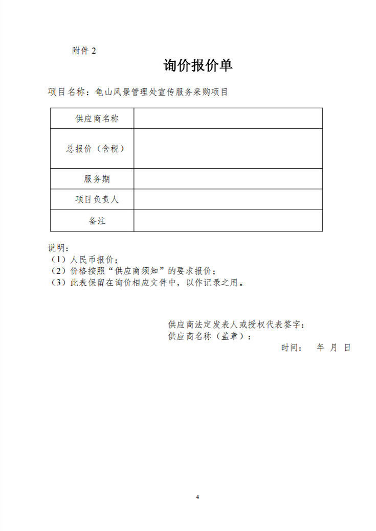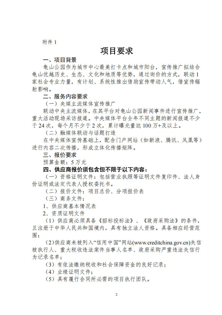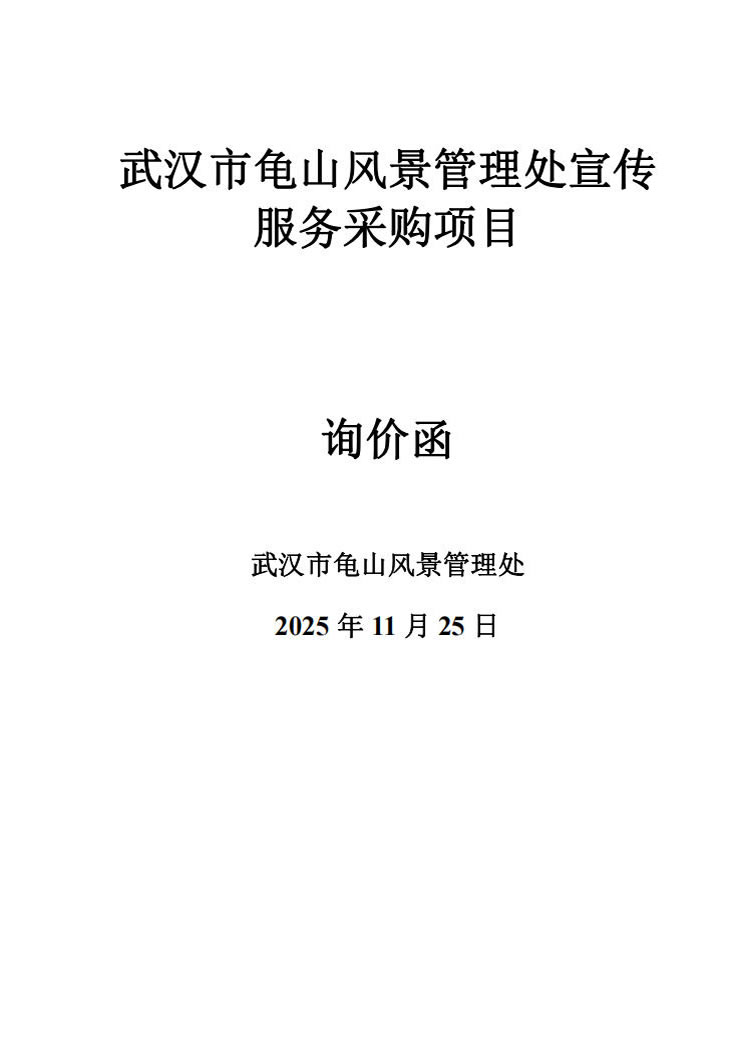 武汉市龟山风景管理处宣传服务采购项目询价函