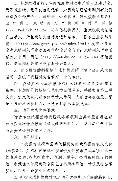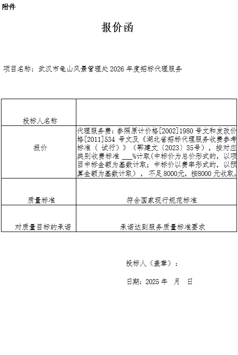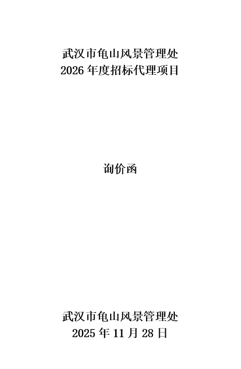 武汉市龟山风景管理处2026年度招标代理项目询价函