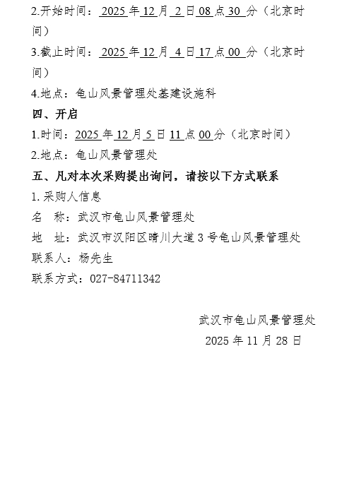 武汉市龟山风景管理处2026年度审计服务询价公告