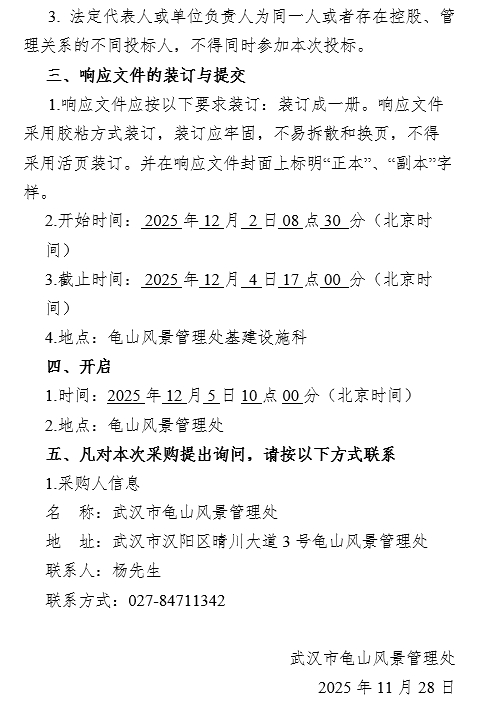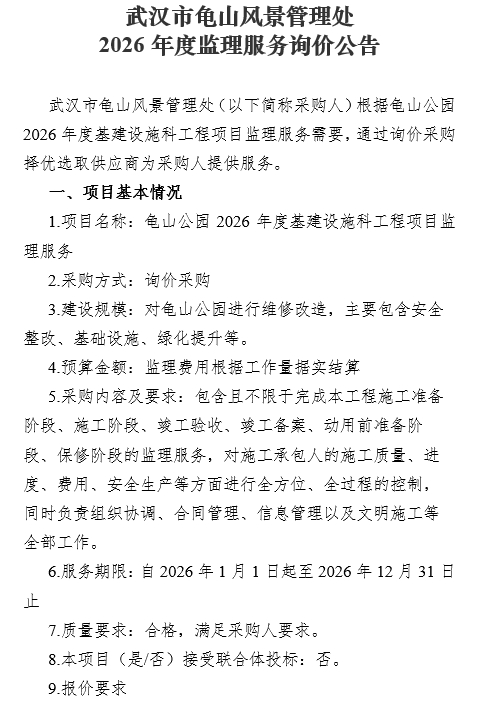 武汉市龟山风景管理处2026年度监理服务询价公告